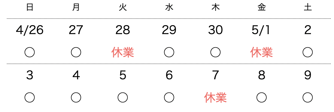 | 定休日 | 火曜日(月曜臨時休業あり) |